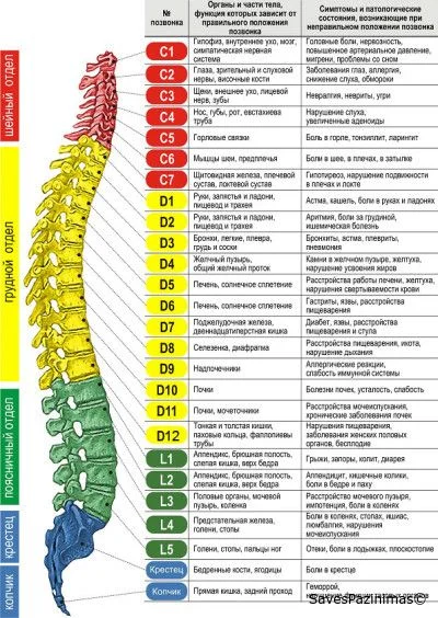 Ниже приведены краткое описание соответствия психологии и позвонка: